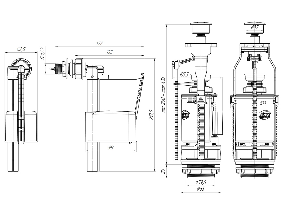 | Комплектация | Сливная арматура, заливная арматура, инструкция, упаковка. |