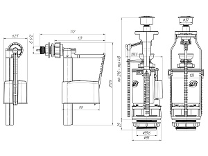 Набор с боковой подводкой АНИ Пласт WC3050M — это надежное и долговечное решение для комплектации бачка унитаза. Комплект включает наливной механизм с боковой подводкой диаметром 1 1/2 дюйма с пластиковым штуцером и сливной механизм с двойной металлической кнопкой. Набор отличается повышенной износостойкостью и современным дизайном. Преимущества набора WC3050M: