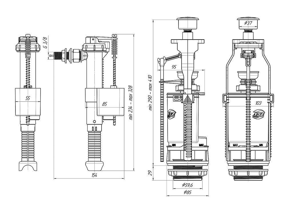 | Комплектация | Сливная арматура, заливная арматура, инструкция, упаковка. |