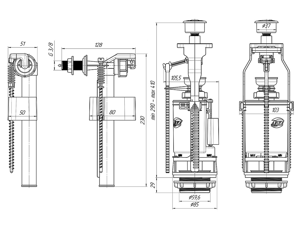 | Комплектация | Сливная арматура, заливная арматура, инструкция, упаковка. |