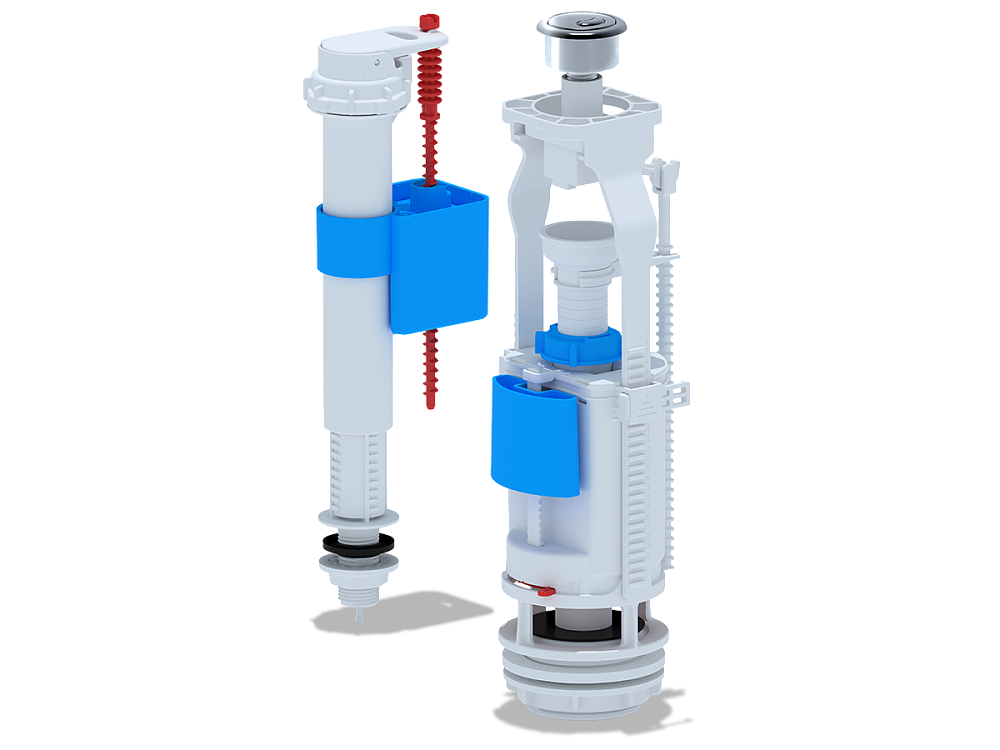 Механизм двойного слива с хромированной кнопкой
