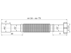 - Регулируемая длина обеспечивает удобство подключения при различных расстояниях до канализационного стояка.