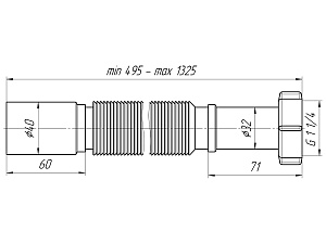 - Увеличенная длина обеспечивает удобство подключения при нестандартной планировке и значительном расстоянии до канализационного стояка.