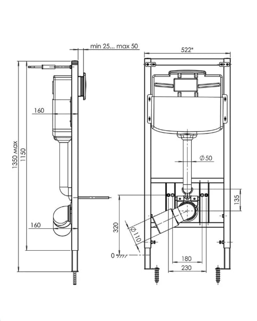 Комплектация:Металлическая рама с крепежом, смывной бачок, клавиша WP1430, переходные трубки, заглушки для труб 50 и 110 мм, картонная упаковка, паспорт с инструкцией. |