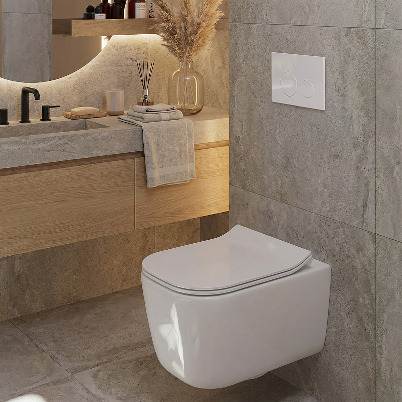 Форма клавиши — круглая панель, которая выгодно отличается мягкостью линий и визуальной динамикой на фоне прямых геометрических форм сантехники и отделки. Круглая клавиша не только эстетична, но и удобна в использовании: её форма воспринимается как естественное продолжение поверхности, а эргономика нажатия продумана для комфортного взаимодействия.