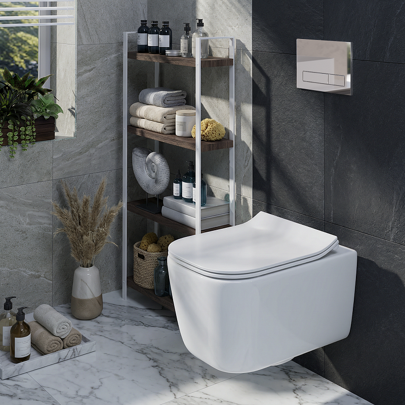Форма клавиши — плоская прямоугольная панель — подчёркивает её современную визуальную простоту. Этот формат хорошо вписывается в интерьер, когда важны аккуратность и лаконичность форм: прямые линии панели органично сочетаются с геометрией отделки, плитки, сантехники и мебели. Плоская панель выглядит аккуратно и непринуждённо, не перегружая пространство, но при этом чётко обозначая функциональную область.