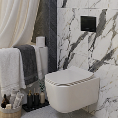 Глянцевая поверхность черного цвета придает клавише эффектный внешний вид и подчеркивает современный характер сантехнического пространства. Такой оттенок хорошо сочетается как со светлой, так и с темной плиткой, а также гармонирует с металлическими аксессуарами, стеклом, мебелью для ванной комнаты и современными смесителями. Благодаря универсальному дизайну клавиша легко вписывается в различные стили интерьера — от минимализма и современного урбан-дизайна до более строгих и лаконичных решений.