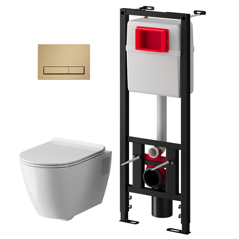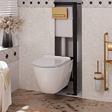 Набор инсталляции 40 см АНИ пласт WN4 1455 Art с безободковым унитазом, с сиденьем микролифт, золото матовый клавишей WP1455
