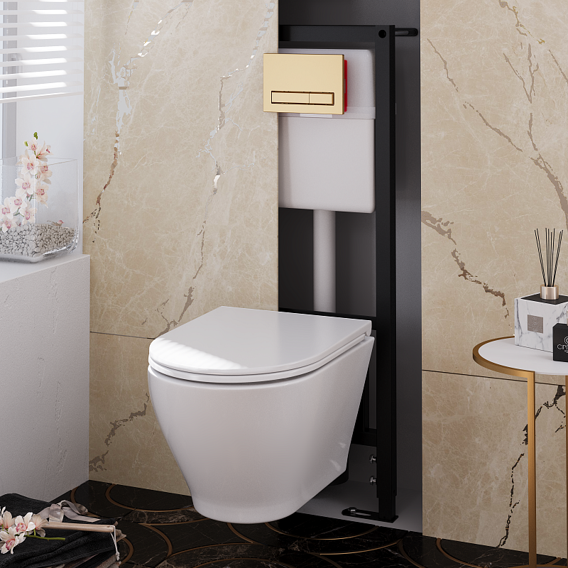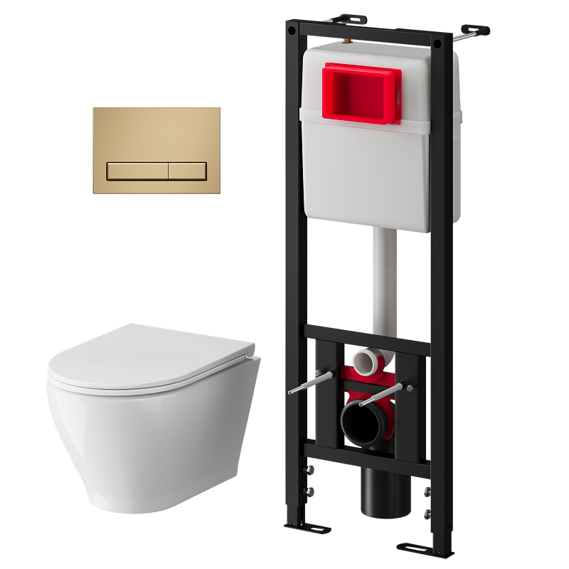 Набор инсталляции 40 см АНИ пласт WN4 1455 Breeze с безободковым унитазом, с сиденьем микролифт, золото матовый клавишей WP1455