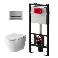 Набор инсталляции 50 см АНИ пласт WN5 1411 Breeze с безободковым унитазом, с сиденьем микролифт, хром матовый клавишей WP1411