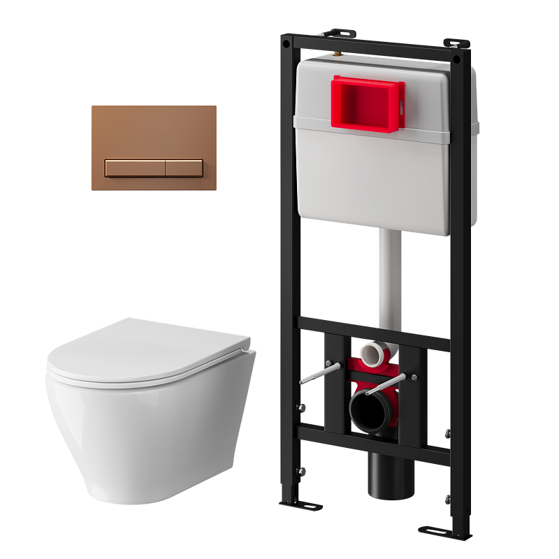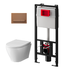 Набор инсталляции 50 см АНИ Пласт WN5 1488 Breeze с безободковым унитазом, с сиденьем микролифт, медь матовый клавишей WP1488