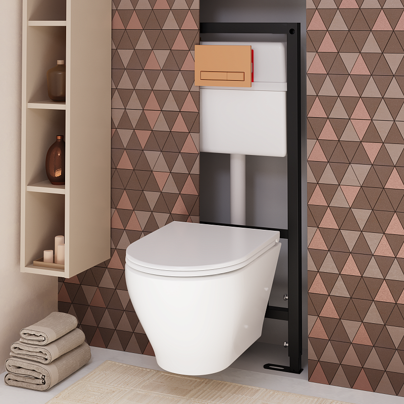 В интерьере ванной важны не только отдельные элементы, но и целостность решения. Комплект серии Breeze от Ани Пласт с шириной рамы 50 см, подвесным безободковым унитазом и сиденьем с микролифтом в оттенке «медь матовая» предлагает всё сразу: дизайн, технологию и качество в едином комплекте.