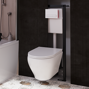 Набор инсталляции 40 см АНИ Пласт WN4 1400 Breeze с безоботковым унитазом, с сиденьем микролифт, белый матовый клавишей WP1400