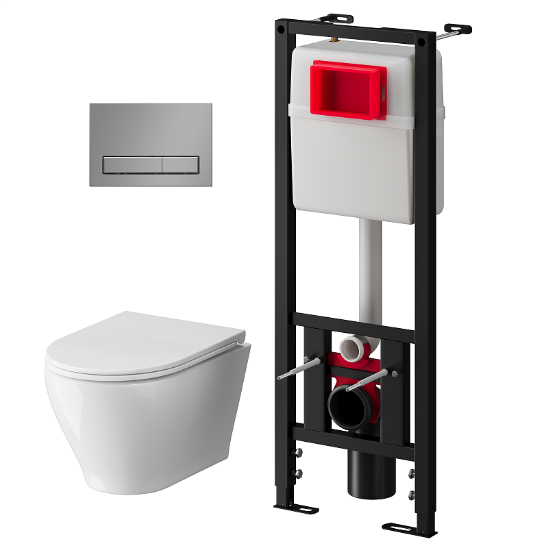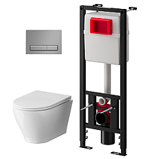 Набор инсталляции 40 см АНИ пласт WN4 1411 Breeze с безободковым унитазом, с сиденьем микролифт, хром матовый клавишей WP1411