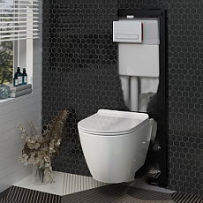 Набор инсталляции 50 см АНИ Пласт WN5 G1400G Art с безободковым унитазом, с сиденьем микролифт, белый глянец клавишей WPG1400G