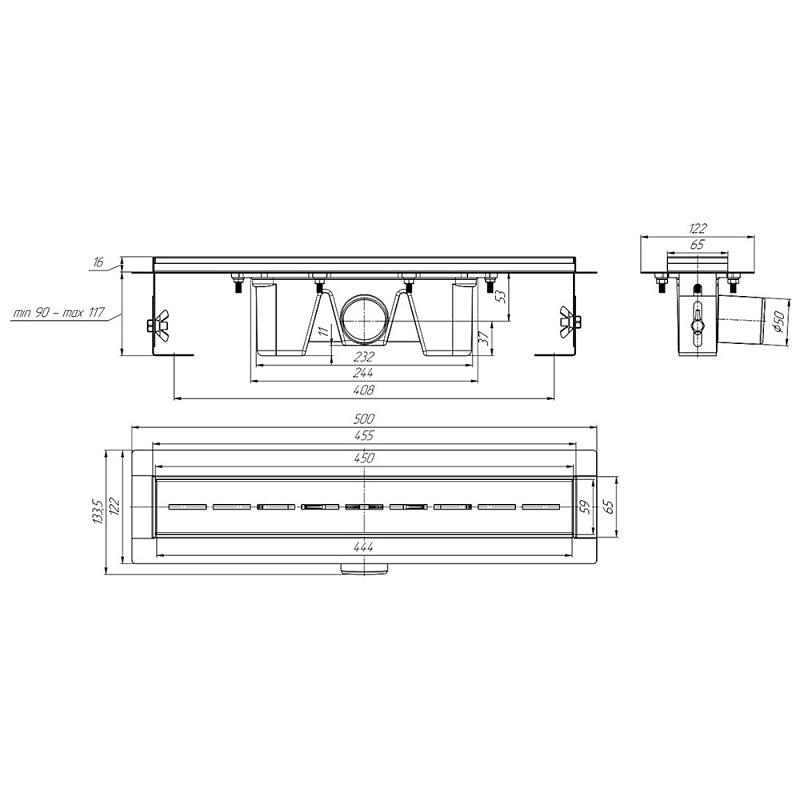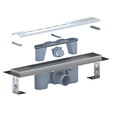 Трап линейный из нержавеющей стали АНИ Пласт TLZ2545G DN50 с комбинированным затвором и глянцевой решёткой Киль 450х65 мм