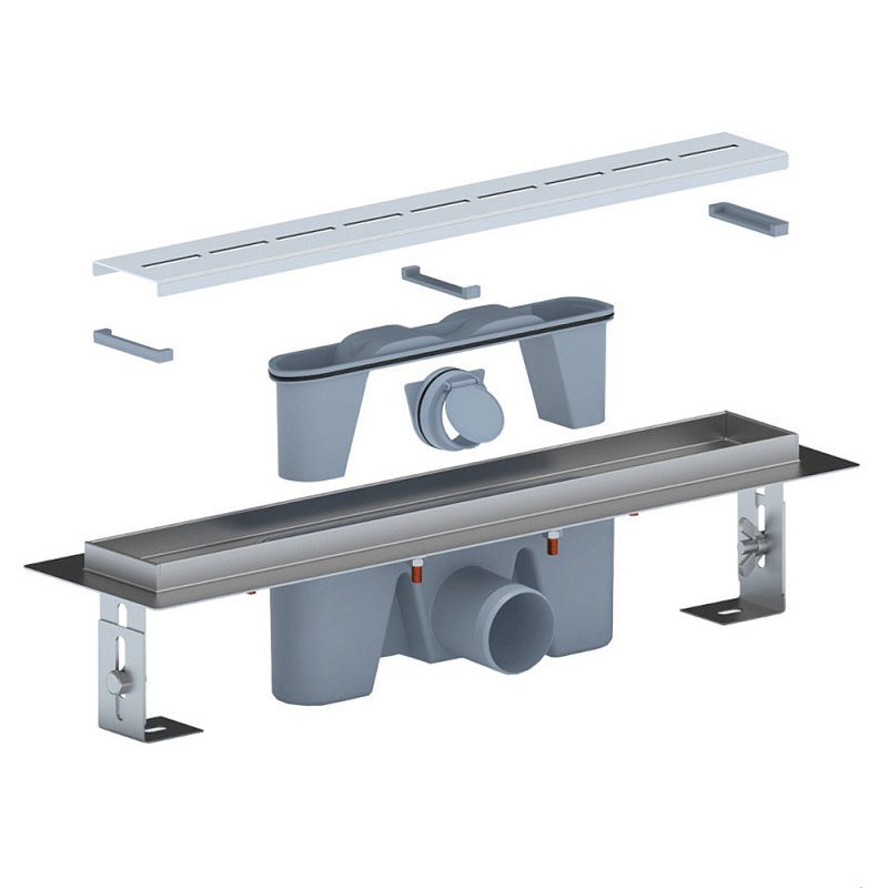Металлический линейный трап АНИ Пласт с инновационным комбинированным затвором и стильной перфорированной решеткой Киль из качественной матовой нержавеющей стали обеспечивает эффективное удаление влаги в душевых и ванных зонах. Продукт специально разработан для помещений с высоким уровнем влажности, гарантируя оперативность водоотведения и поддержание гигиеничности пространства. Основные преимущества трапа АНИ Пласт с декоративной решеткой Киль: