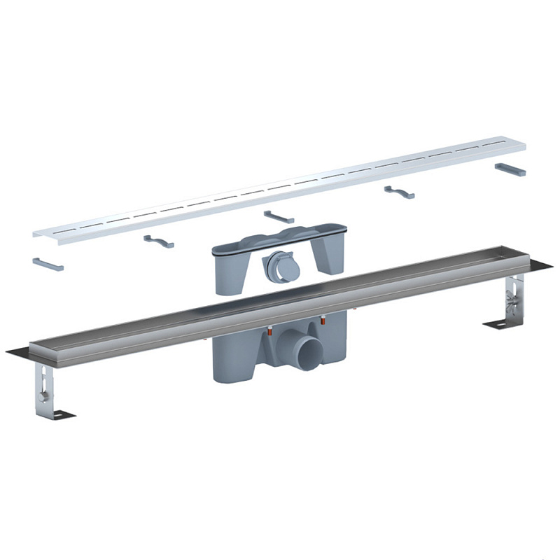 Металлический линейный трап АНИ Пласт с инновационным комбинированным затвором и стильной перфорированной решеткой Киль из качественной глянцевой нержавеющей стали обеспечивает эффективное удаление влаги в душевых и ванных зонах. Продукт специально разработан для помещений с высоким уровнем влажности, гарантируя оперативность водоотведения и поддержание гигиеничности пространства. Основные преимущества трапа АНИ Пласт с декоративной решеткой Киль: