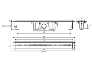 Трап линейный из нержавеющей стали АНИ Пласт TL2265M выпуск 50 мм решётка Риф матовая 650 мм