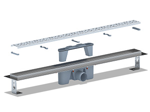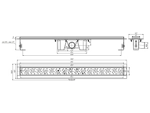 Трап линейный из нержавеющей стали АНИ Пласт TL2385M выпуск 50 мм решётка Бриз матовая 850 мм