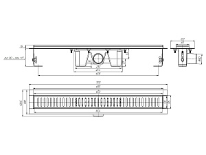 Трап линейный из нержавеющей стали АНИ Пласт TL2465G выпуск 50 мм решётка Бимс глянцевая 650 мм