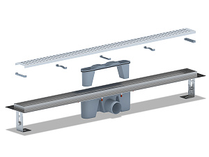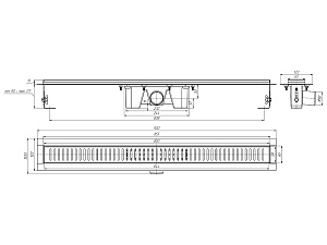 Трап линейный из нержавеющей стали АНИ Пласт TL2485M выпуск 50 мм решётка Бимс матовая 850 мм