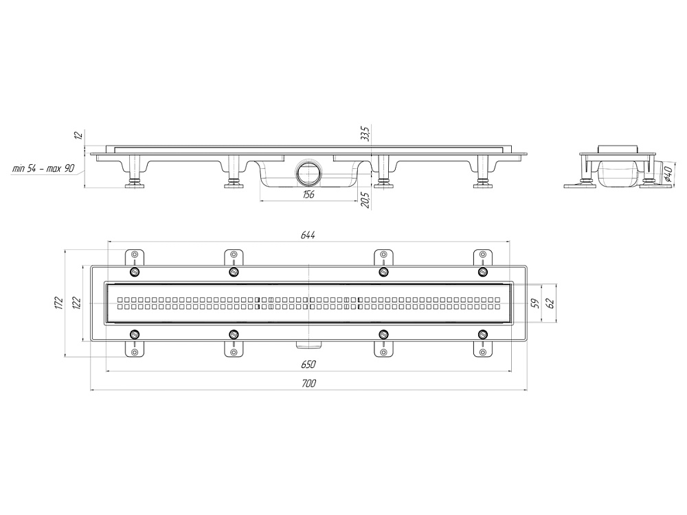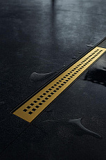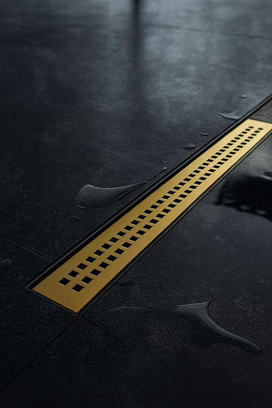 Трап линейный пластиковый АНИ Пласт TL1265B5M выпуск 40 мм решётка Риф золото матовое нержавеющая сталь 650 мм