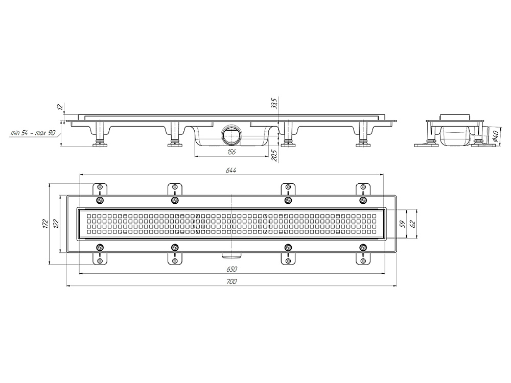 | Трап линейный АНИ Пласт TL1665B3M — пластиковый слив с выпуском 40 мм и широкой решёткой «Корн» 650 мм в матово-чёрном цвете. Увеличенная площадь водосбора, гидрозатвор, регулировка высоты. Для просторных душевых и коммерческих помещений. | |