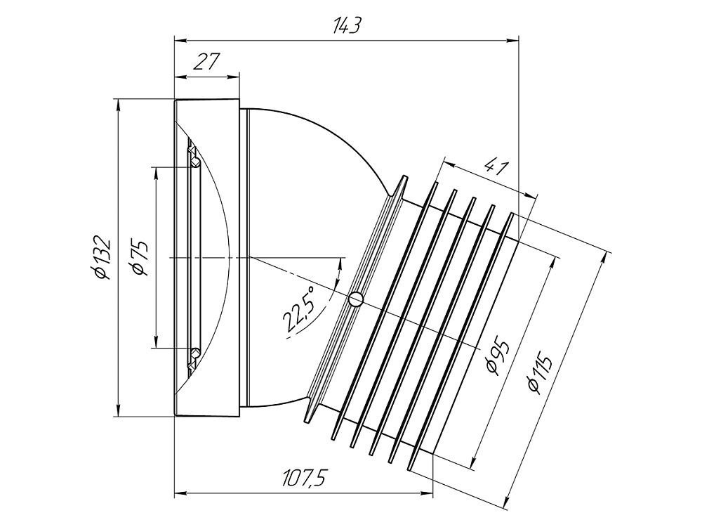 | Угол | 22 градуса |