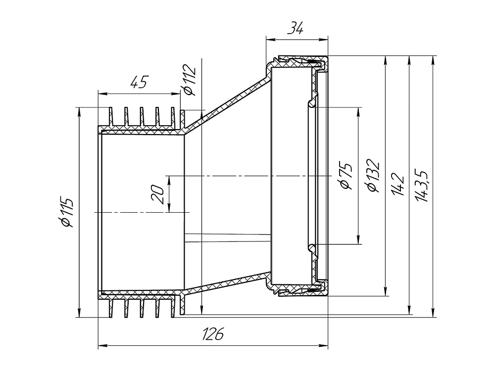 | Эксцентрик жесткий для подключения унитаза к канализации диаметр 110мм. Для чугунных труб |