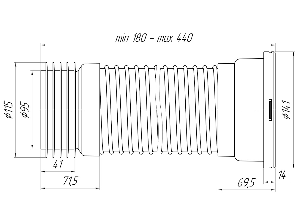 Удлинитель гибкий для унитаза K518 армированный обратного сжатия предназначен для подключения унитаза к канализации. Диапазон длины: 180-440 мм.