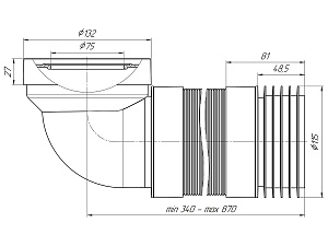 Удлинитель гибкий гофрированный для унитаза K729R угол 90° выпуск 100-110 мм предназначен для присоединения унитазов к системе канализации. Диапазон длины: 340-870 мм.