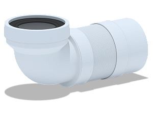 - Угловое соединение 90 градусов обеспечивает удобный монтаж при сложной конфигурации канализационного вывода.
