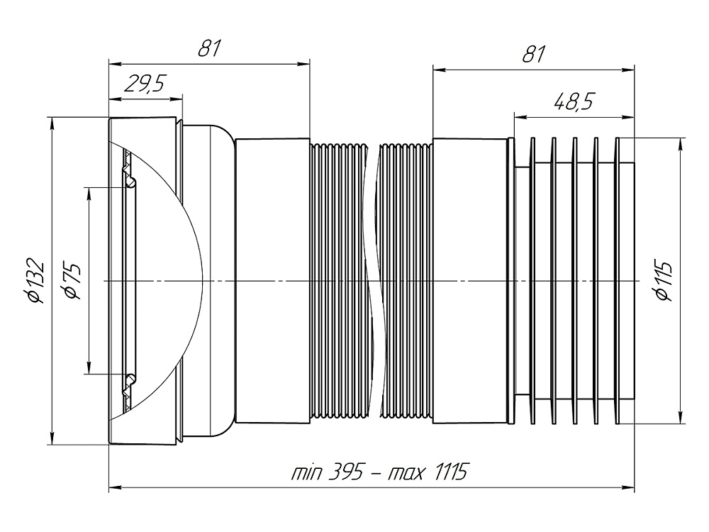 - Максимальный диапазон длины обеспечивает установку при значительном удалении канализационного стояка.