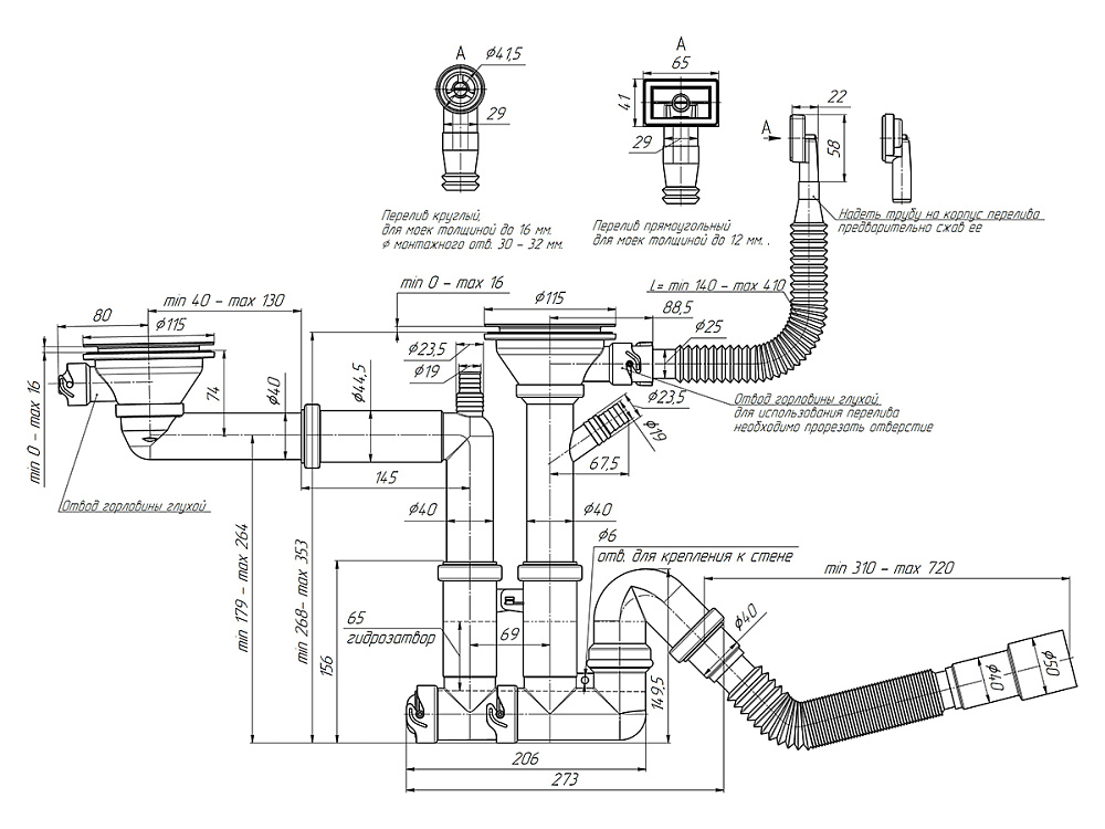 Преимущества сифона для мойки АНИ Пласт F серия F7500SA15: