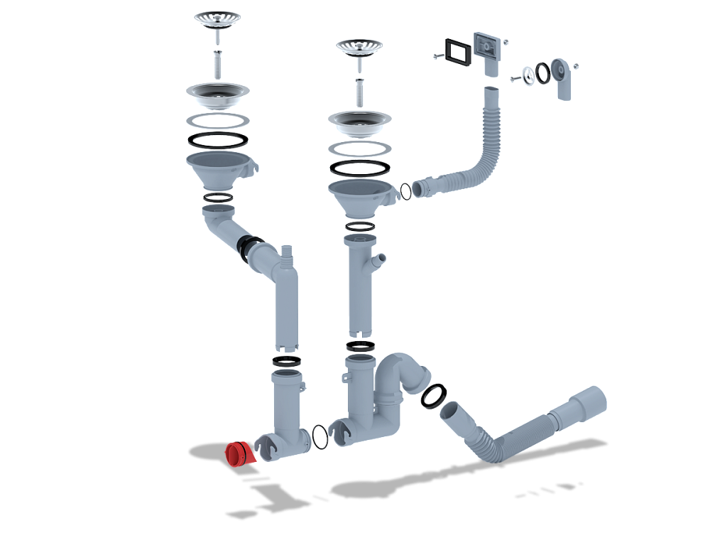 - Двойная смещённая конструкция для экономии пространства и эффективного слива.