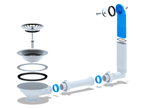 - Специализированная конструкция предназначена для надежного монтажа на композитных мойках со сливным отверстием 90 мм.