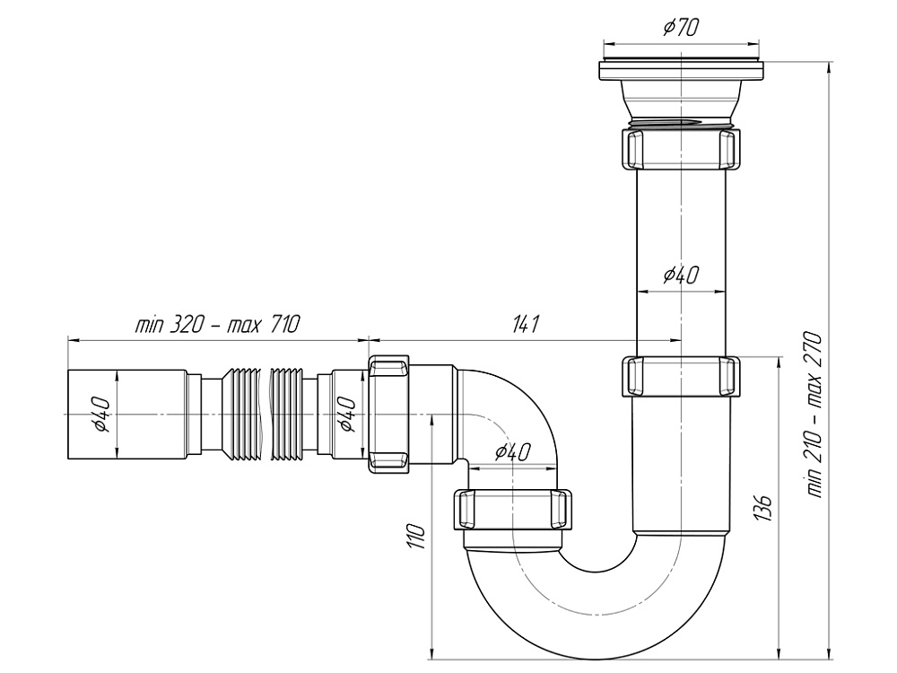 - Стандартные размеры делают сифон универсальным выбором для большинства кухонных моек.