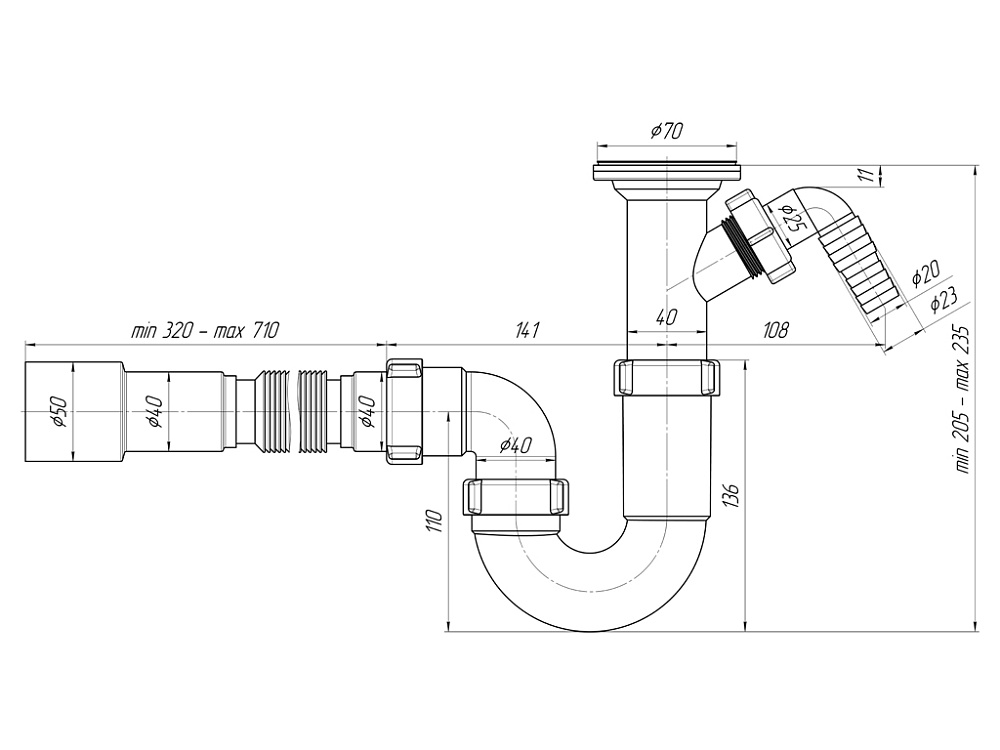 Длина гибкой трубки320-710 мм