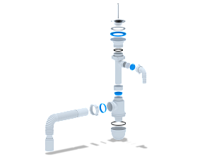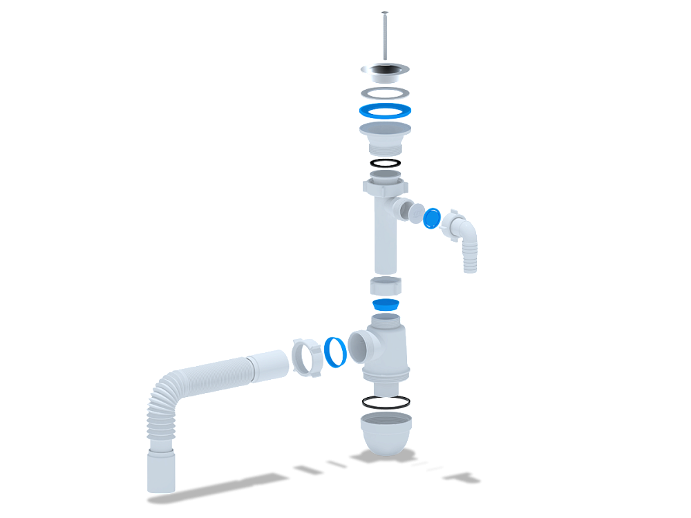 - Гибкая труба 40×40 мм облегчает установку сифона даже в труднодоступных местах и позволяет адаптировать конструкцию под особенности монтажа.