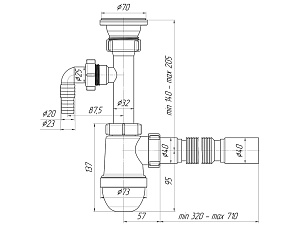 - Сифон подходит для большинства стандартных моек, что облегчает выбор и установку.