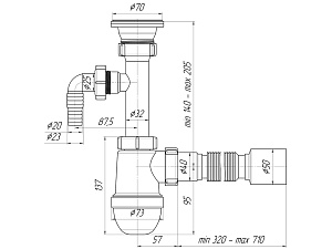 Сифон для мойки АНИ пласт C0310 1 1/2 дюйма 40 мм с отводом для стиральной машины с гибкой трубой 40х50 мм
