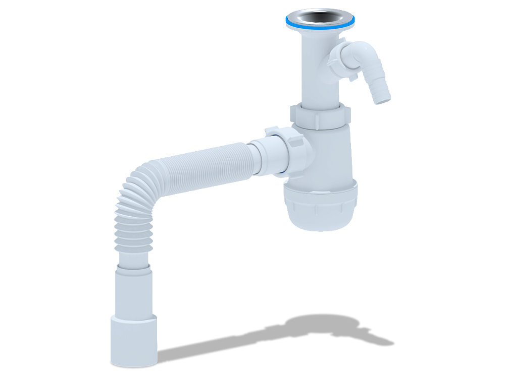 - Сифон подходит для большинства стандартных моек, что облегчает выбор и установку.