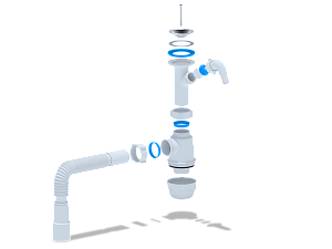 - Гибкая труба 40×40/50 мм облегчает установку сифона даже в труднодоступных местах и позволяет адаптировать конструкцию под особенности монтажа.