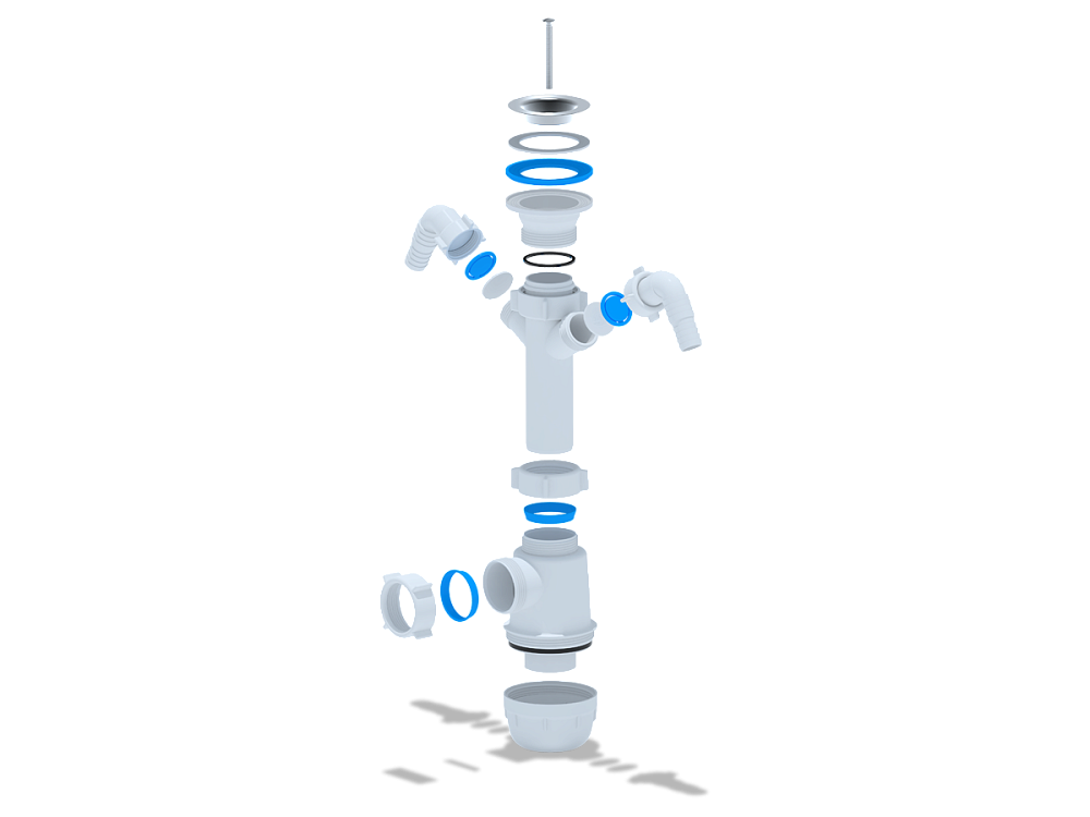 - Инженерная конструкция сифона обеспечивает быстрый и надёжный монтаж, а также лёгкий доступ для обслуживания.