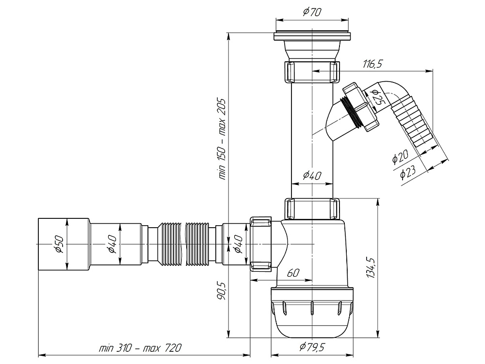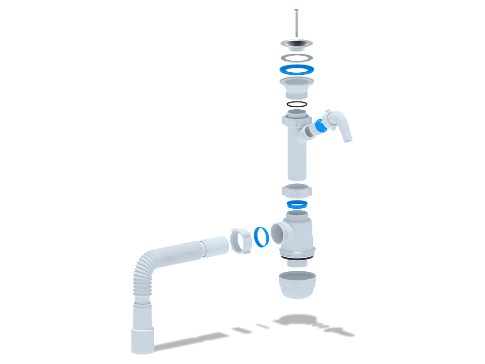 - Гибкая труба облегчает установку и позволяет адаптировать сифон под особенности монтажа, обеспечивая надёжное соединение.
