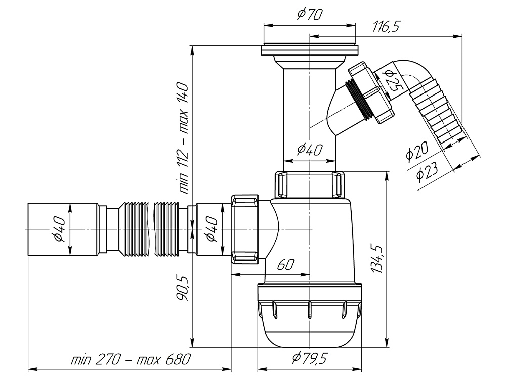 | Тип сифона | Бутылочный |