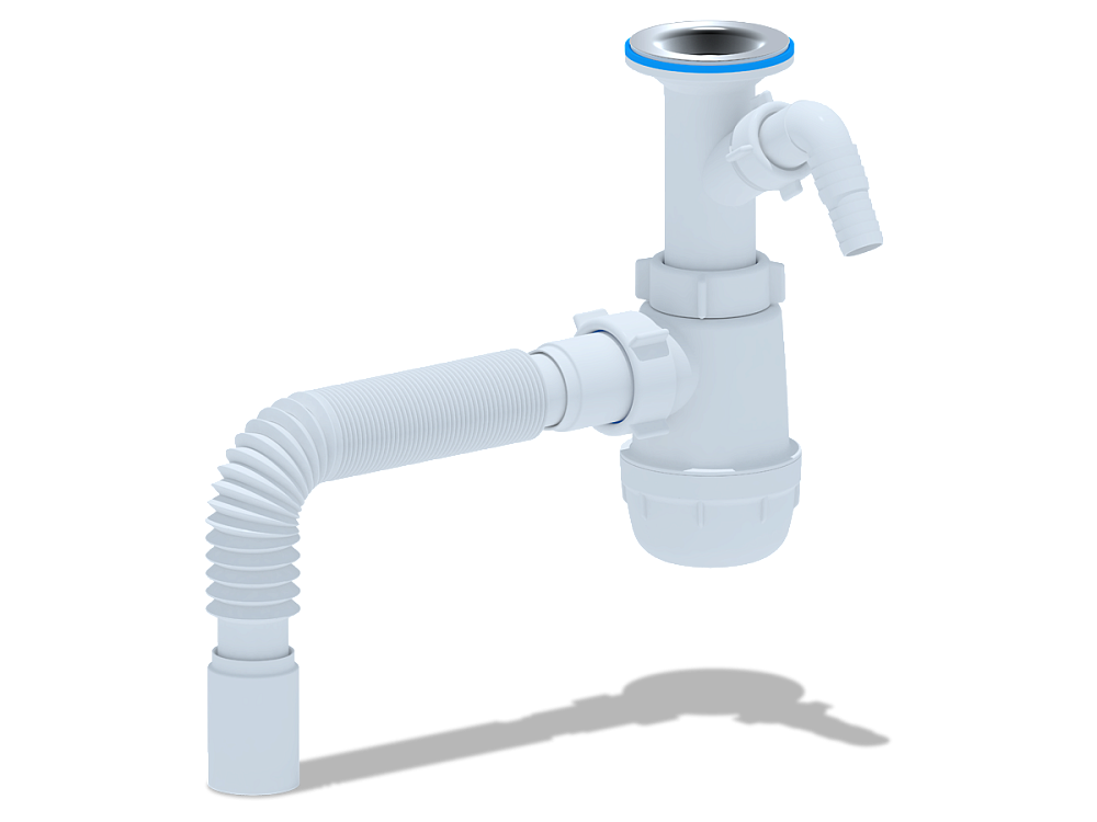 - Сифон подходит для большинства стандартных моек, что облегчает выбор и установку.