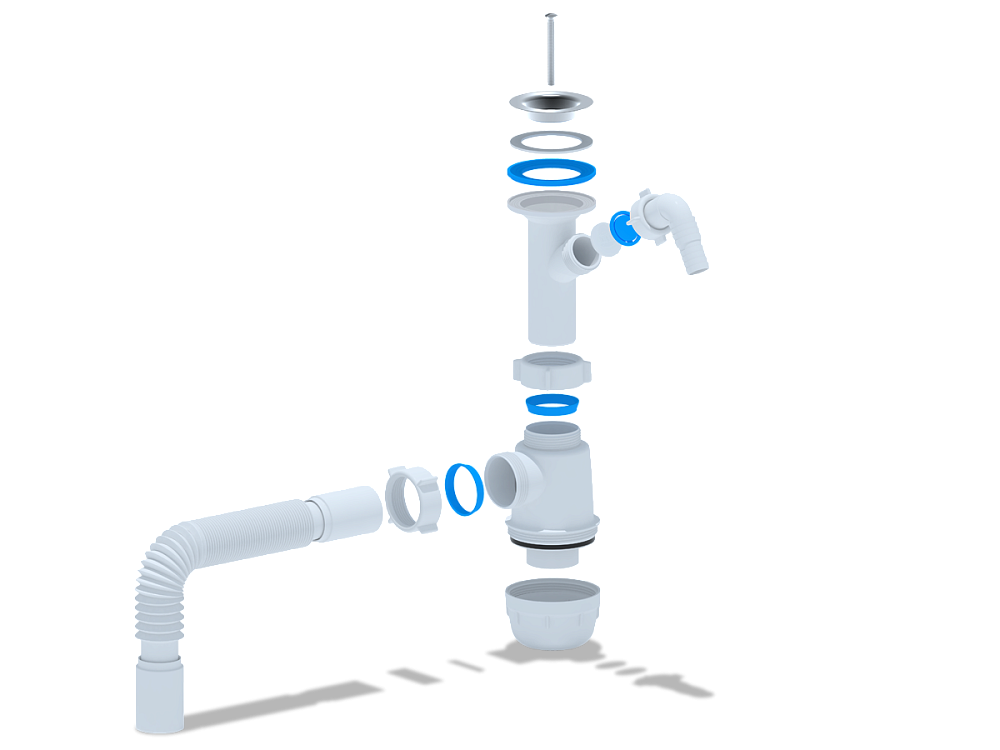 - Гибкая труба 40×40 мм облегчает установку сифона даже в труднодоступных местах и позволяет адаптировать конструкцию под особенности монтажа.