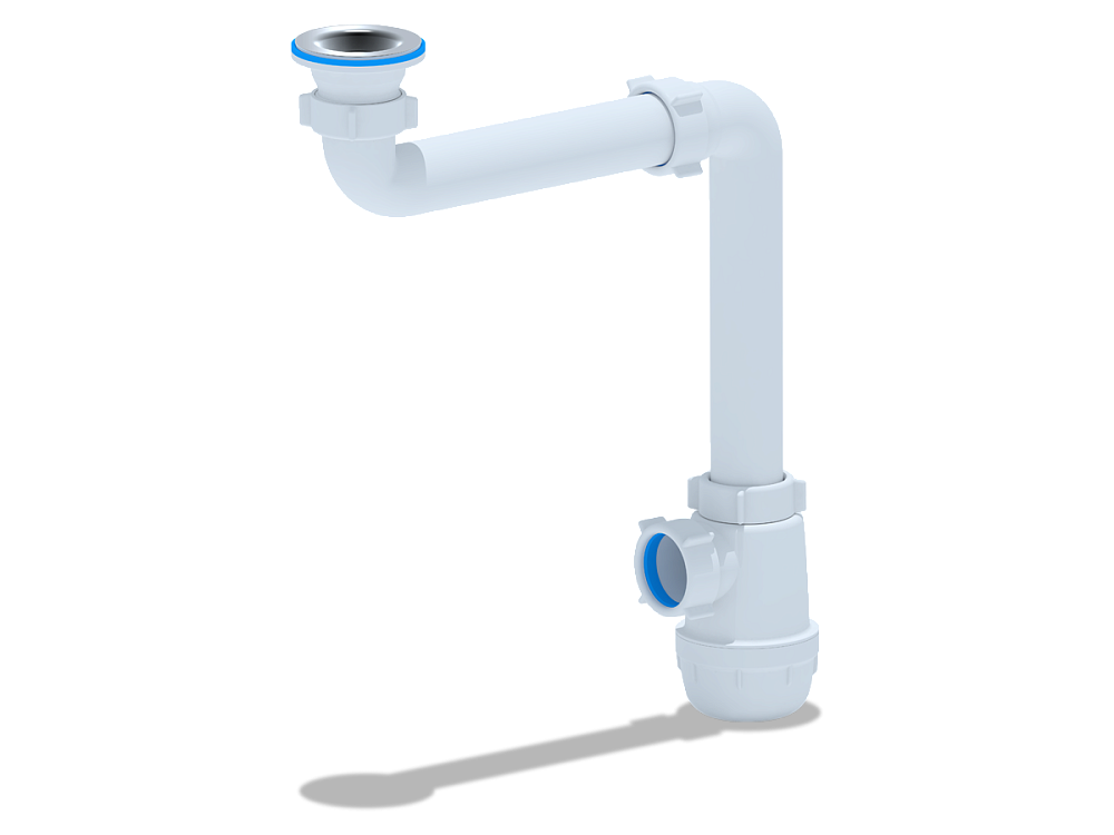 - Компактная форма сифона не мешает размещению других предметов под раковиной и подходит для большинства кухонных шкафов.